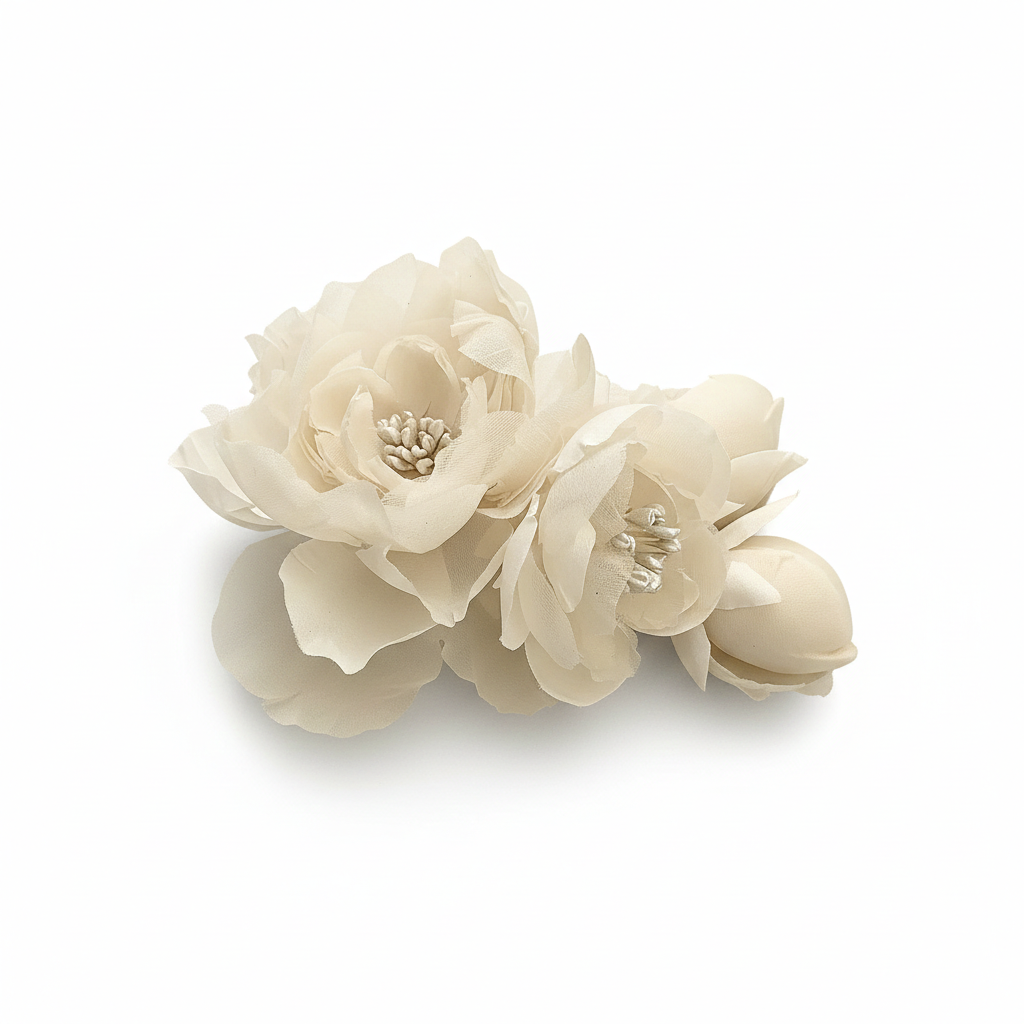Arranjo Floral Artesanal em Cetim e Organza de Seda Pura – Acessório para Noivas