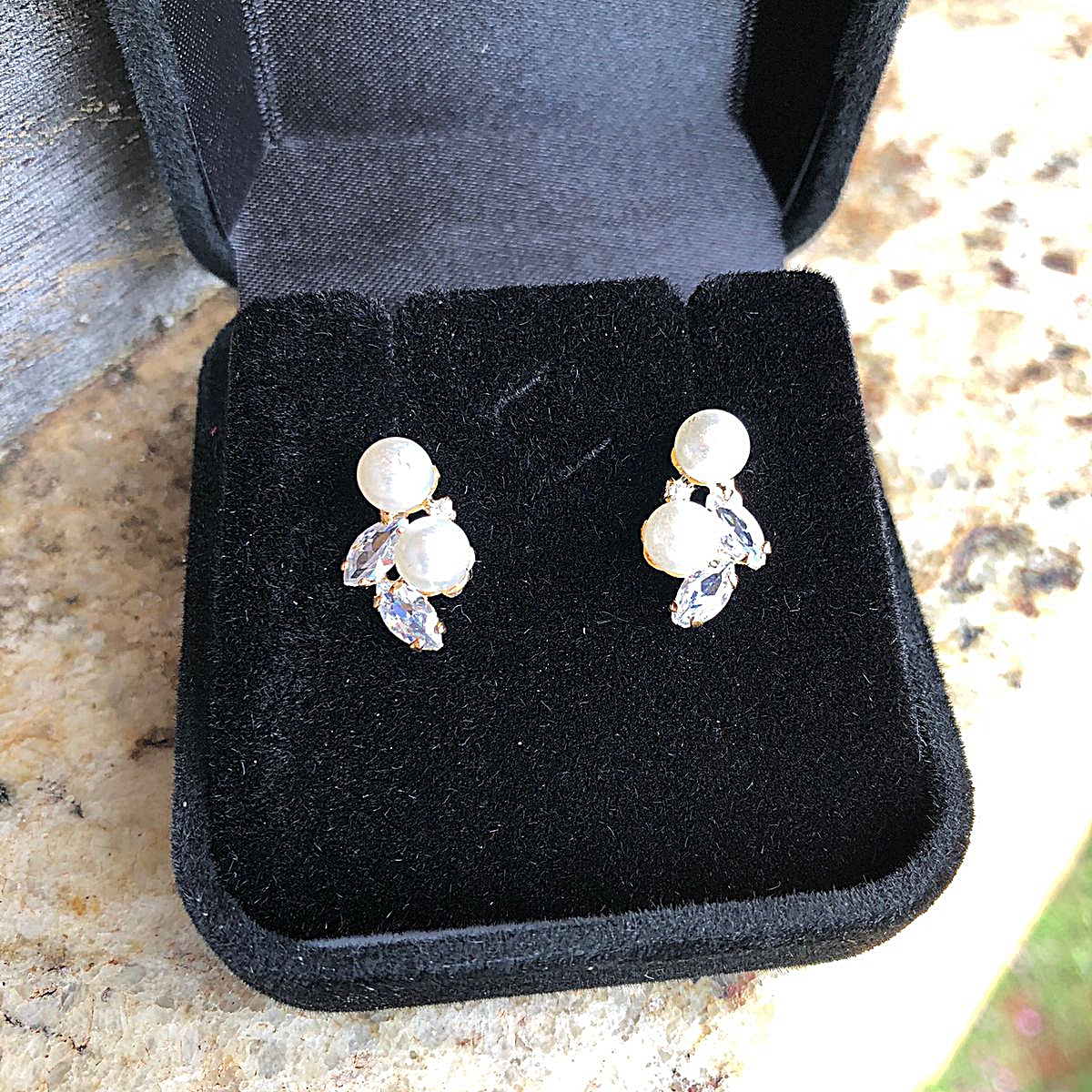 Brincos confeccionados em pérolas sinteticas e navetes de zirconia.
